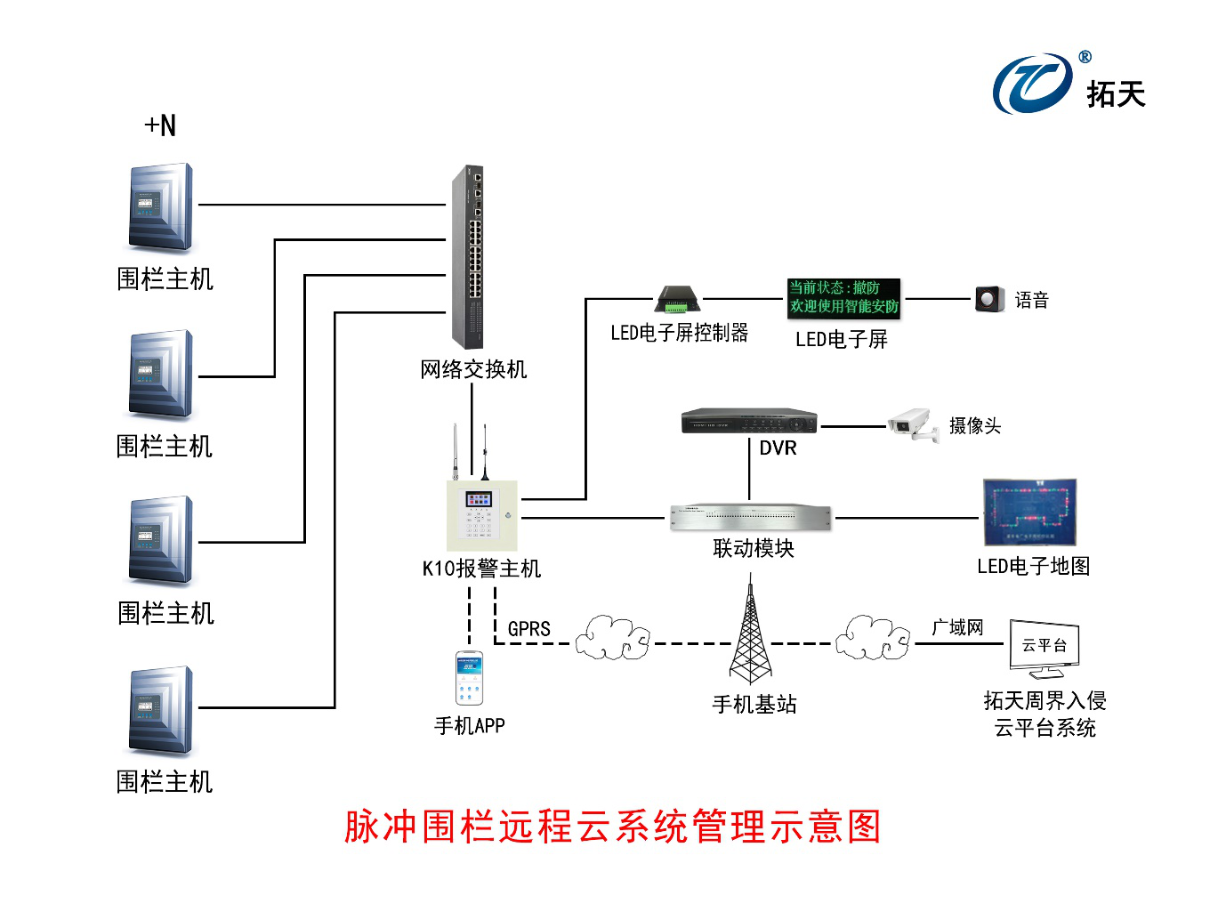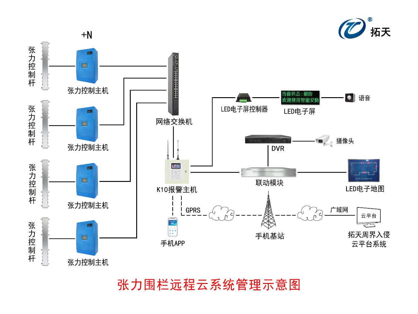 全面支持接入脈沖電子圍欄、張力電子圍欄、洩漏電纜、振動光纖 、地址碼等周界報(bào)警設備,並(bìng)實現集中統一管理。雲平台軟件可以連入多達幾百個GPRS報(bào)警主機。