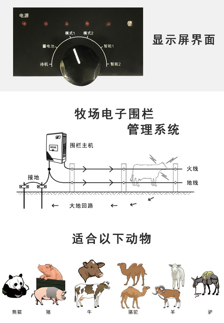 • 适用於(yú)牧場(chǎng)、養殖場(chǎng)、動物園等 ,可以限制圈養動物的活動範圍;