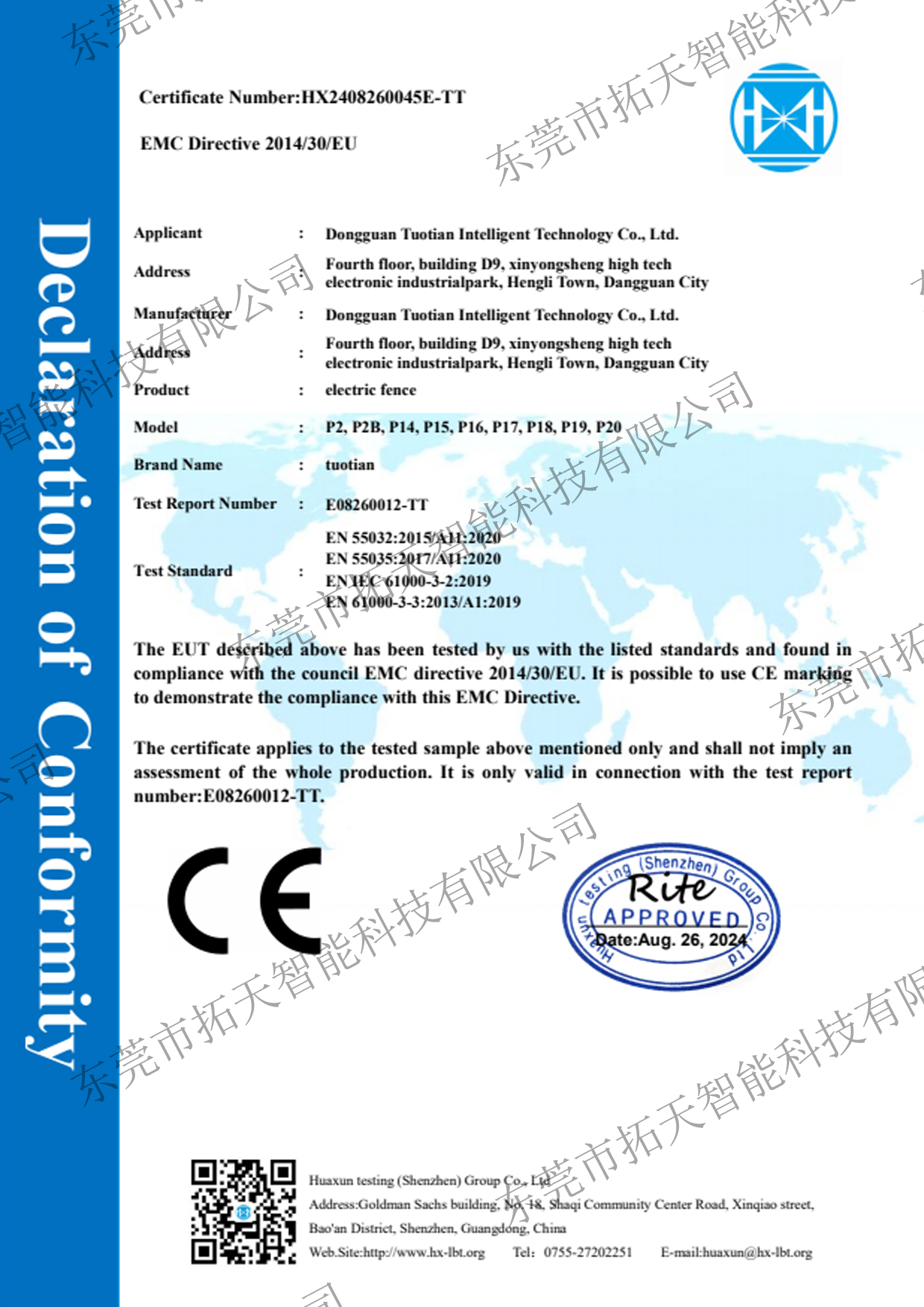 畜牧電(diàn)子圍欄(lán)CE-EMC證書